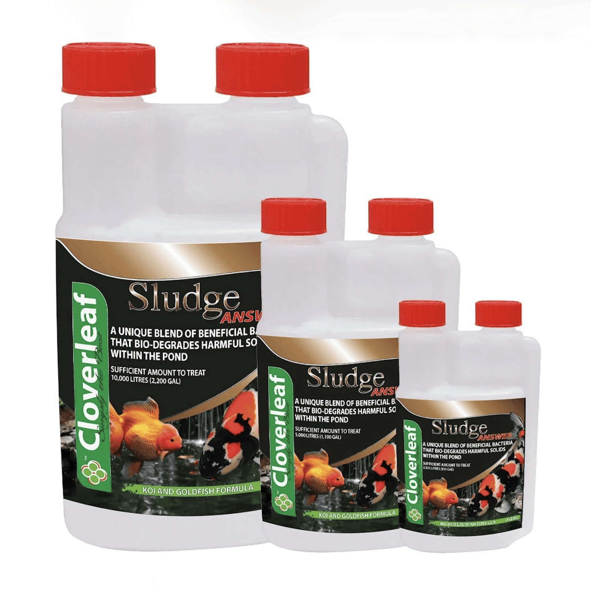 Sludge Answer from Cloverleaf is a live beneficial bacteria culture that helps to bio degrade the harmful solids that build up in the pond and the filter which can become a breeding ground for harmful pathogenic bacteria, these solids will also reduce the amount of saturated oxygen present in the water.